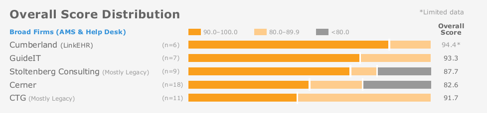 - In the 2018 Best in KLAS: Software & Services report, Cumberland received an overall score of 94.4 in the IT Advisory Services category, which exceeded the market segment average by nearly three points. Additionally, Cumberland’s HIT Implementation and Support Services were also mentioned with an overall score of 91.3.