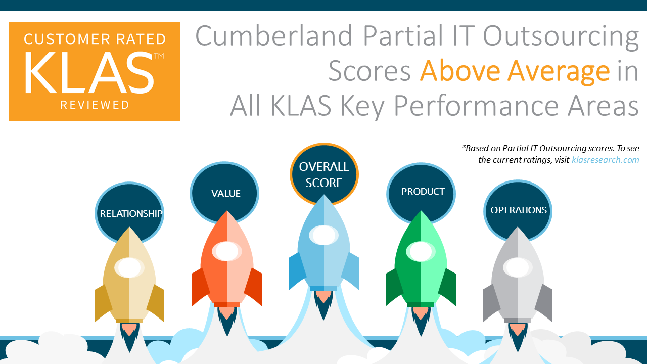 “We use Cumberland in an effort to have efficiency in help desk support and to get expertise in first-tier resolutions.”DIRECTOR, October 2018 (Selected commentary collected about Cumberland Partial IT Outsourcing October 2018 © 2018 KLAS. Visit www.klasresearch.com for a complete view.)